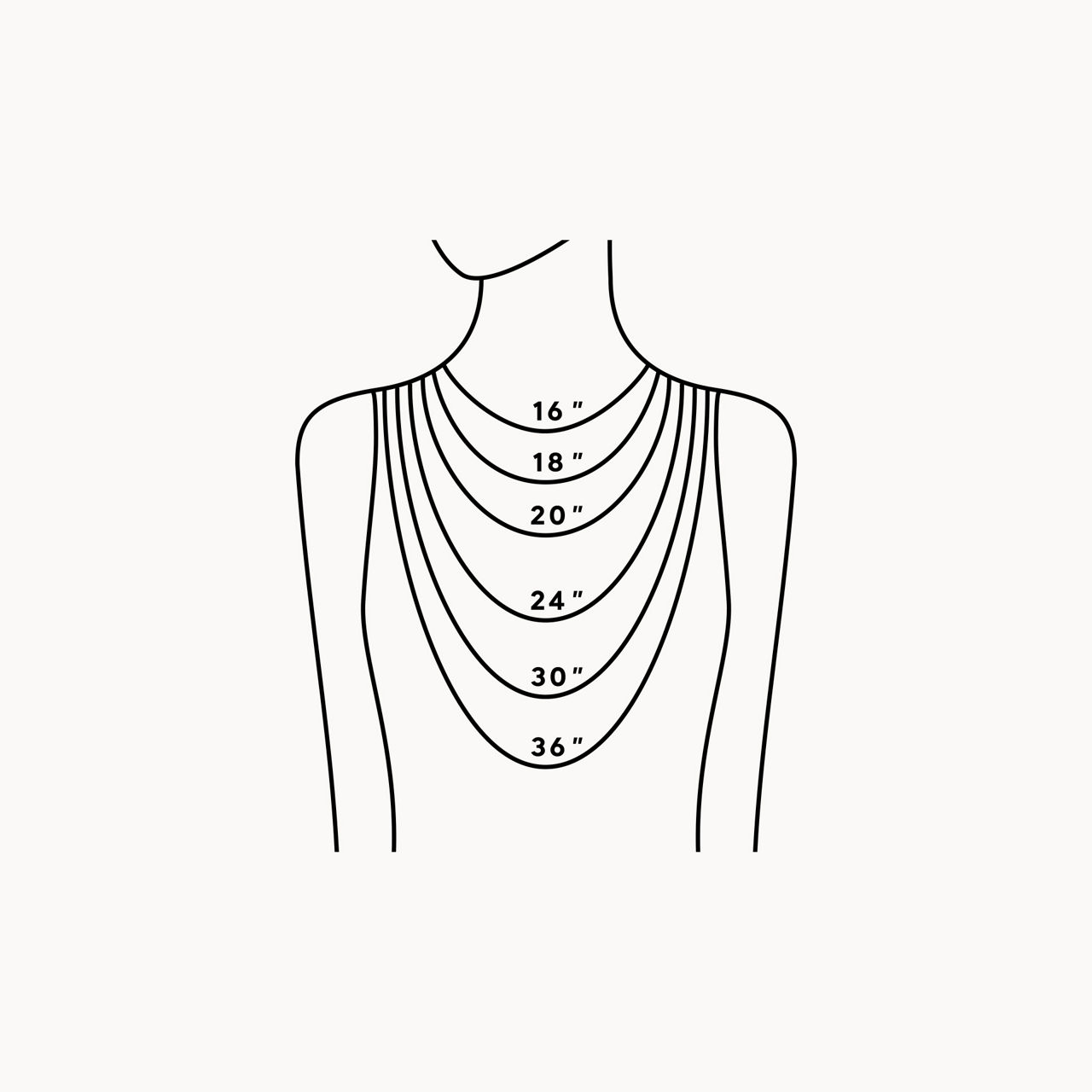 Necklace length influences how a piece sits on the body. Your neck measurement, chain length, and pendant proportions all affect the final look — whether worn alone or layered with other necklaces.
